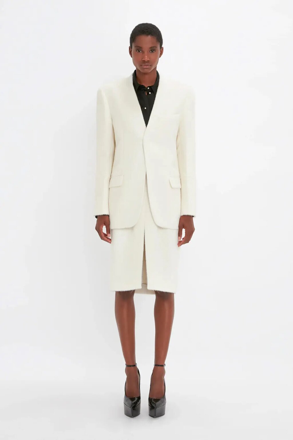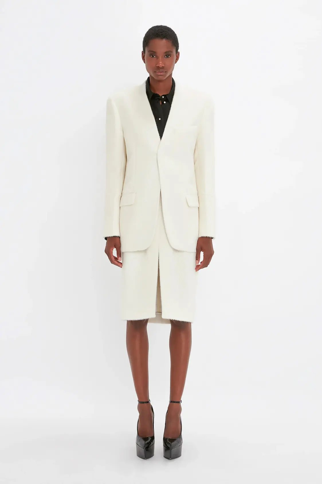 Reimagined in a soft shade of cream, this lambswool Polo Neck has subtle design details such as a contrasting ribbed neck. A saddle shoulder design adds further interest. Wear the neck folded over or upright. Buy this product on victoriabeckham.com