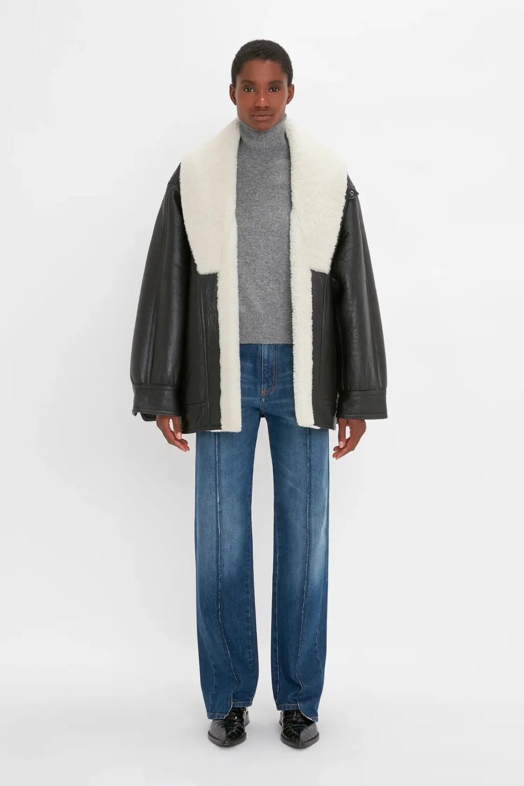 Reimagined in a soft shade of cream, this lambswool Polo Neck has subtle design details such as a contrasting ribbed neck. A saddle shoulder design adds further interest. Wear the neck folded over or upright. Buy this product on victoriabeckham.com
